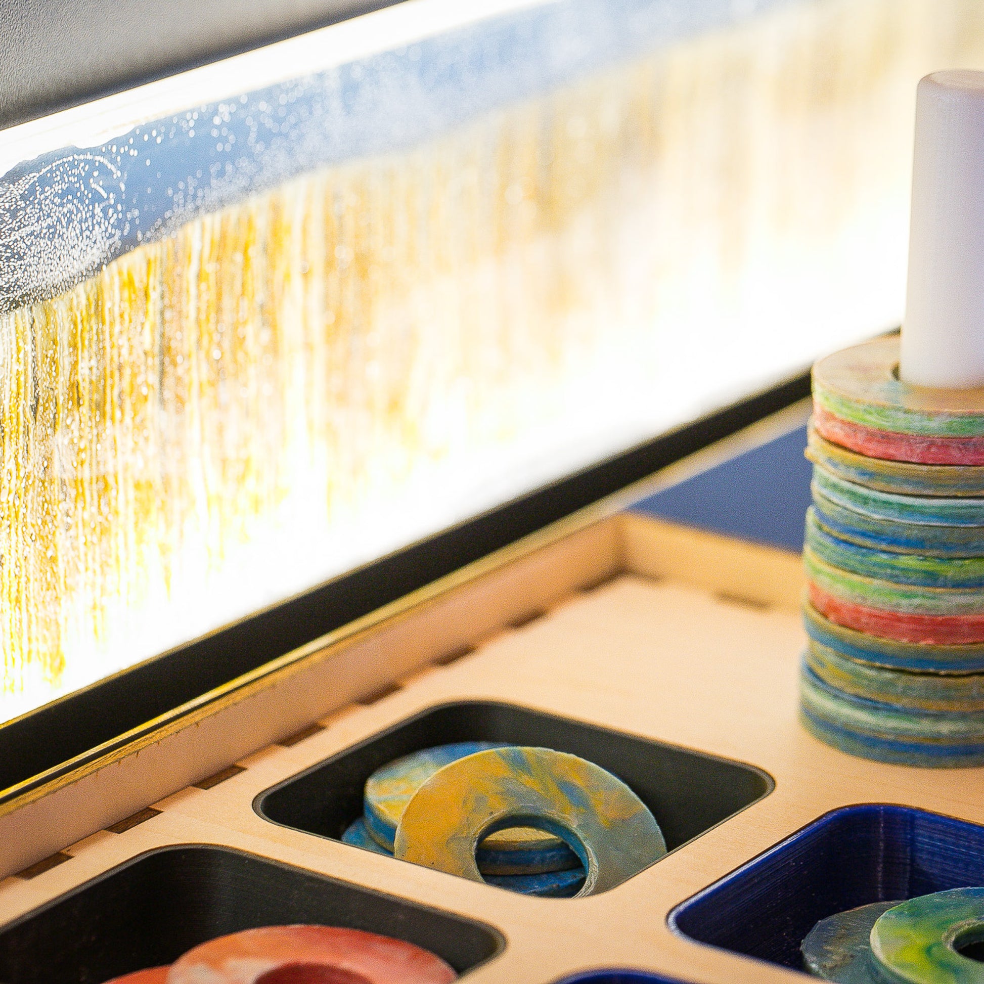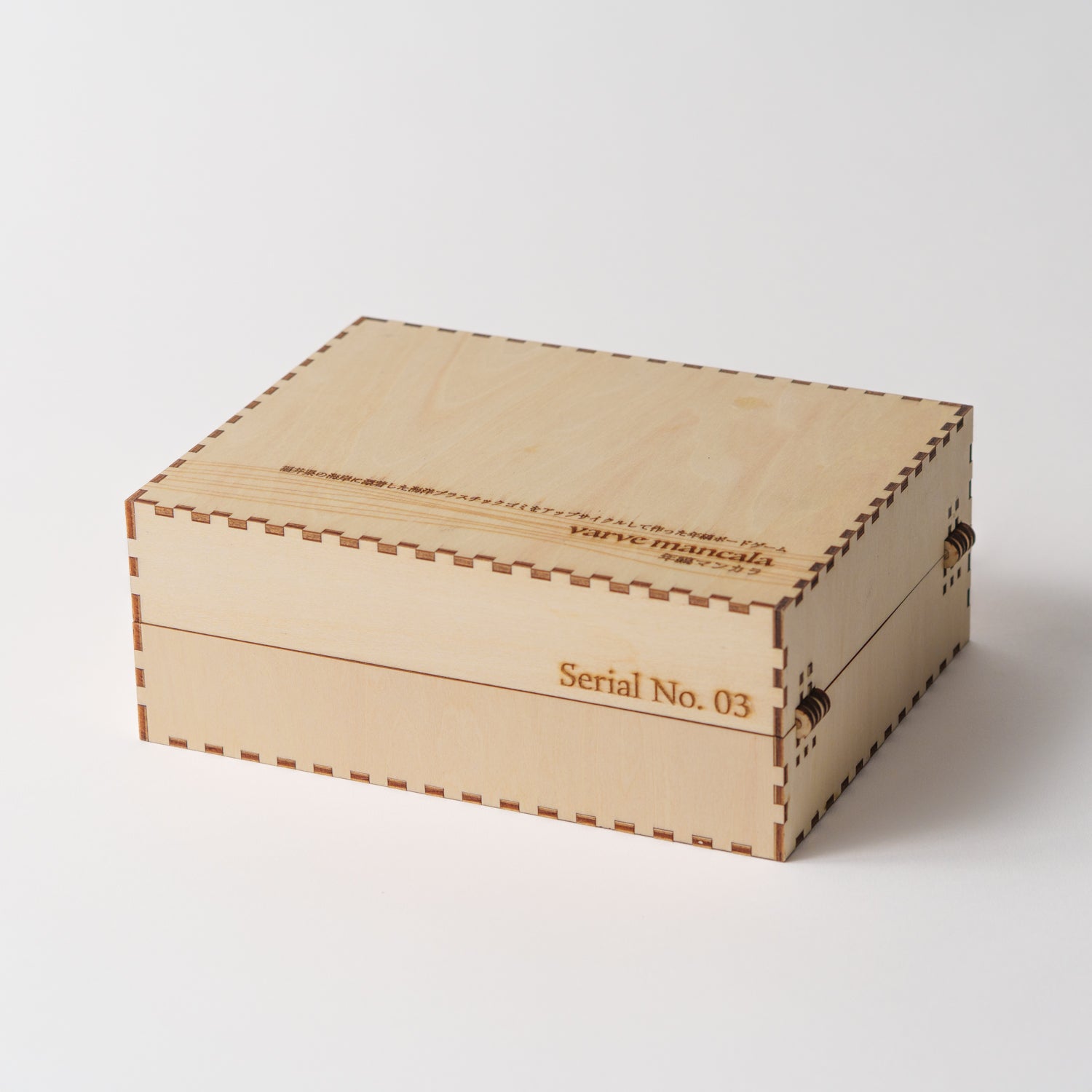 ・福井県の海岸に漂着した海洋プラスチックをアップサイクルして製作したドーナツ型のコマとレーザーカッターで製作した箱、そして3Dプリンターで製作したパーツで構成されております。