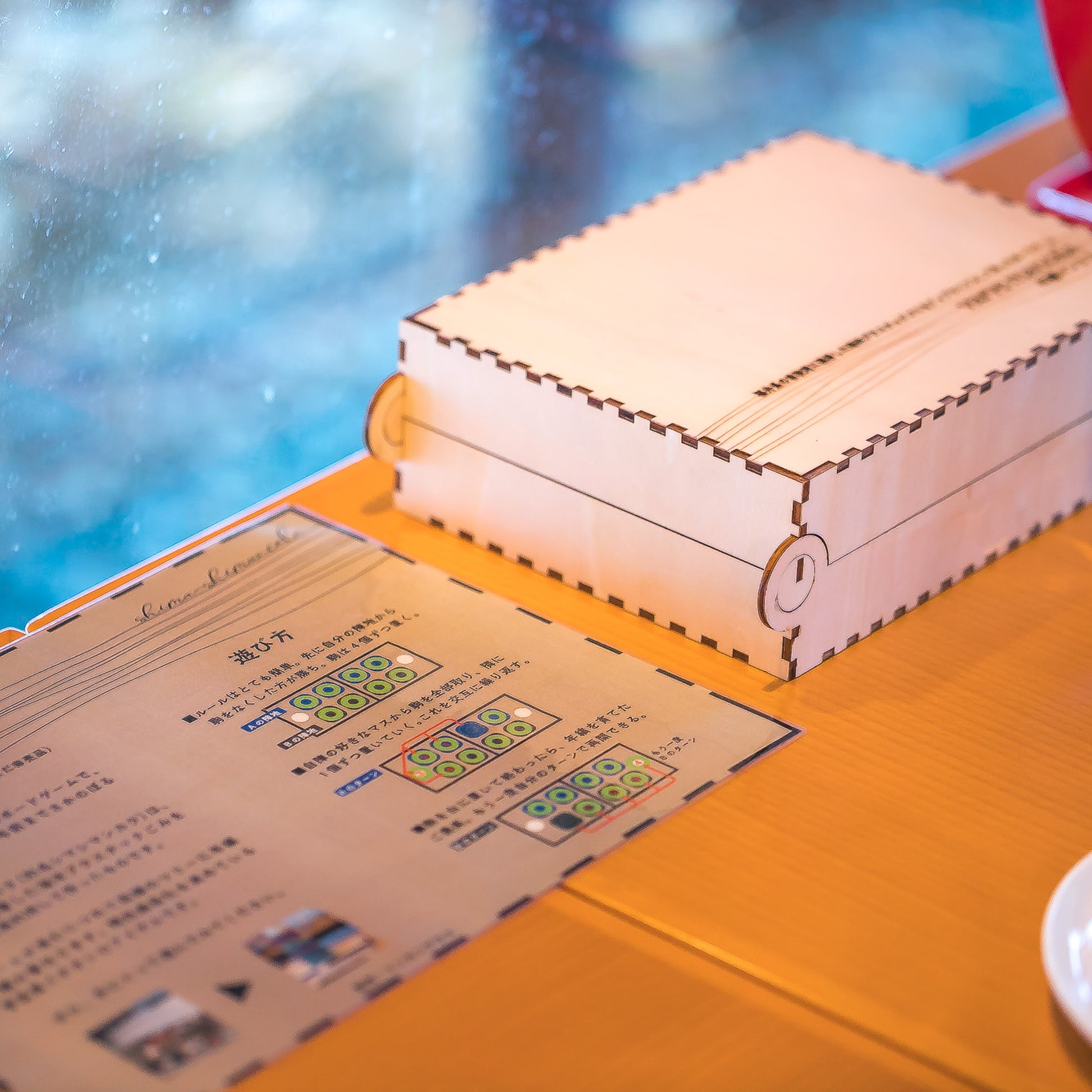 年縞マンカラのシリアルナンバー【001】は、年縞博物館内に併設されている「Cafe縞」さんに置いていただいており、シリアルナンバー【002】は、福井市のものづくり工房トンカンテラスに置いてあります。