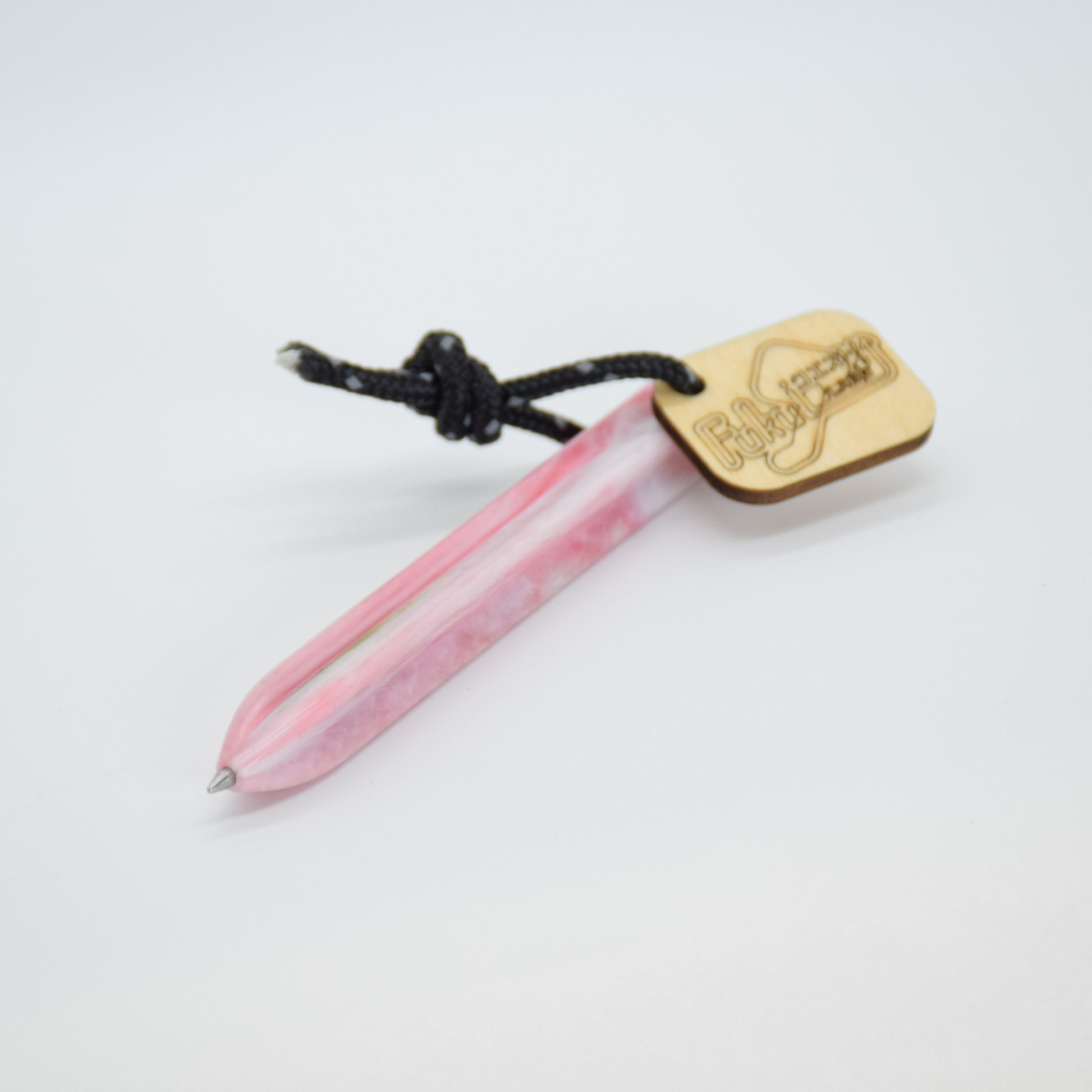 番組内で研究員たちが考案し、福井県小浜市矢代海岸で回収した海洋プラスチックごみをアップサイクルして、番組ロゴのチャーム付きのオリジナルボールペンが完成致しました!