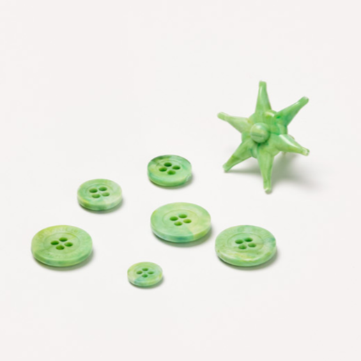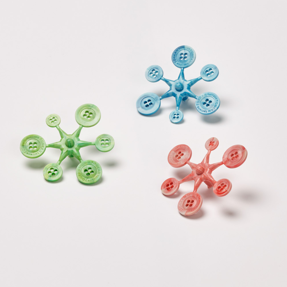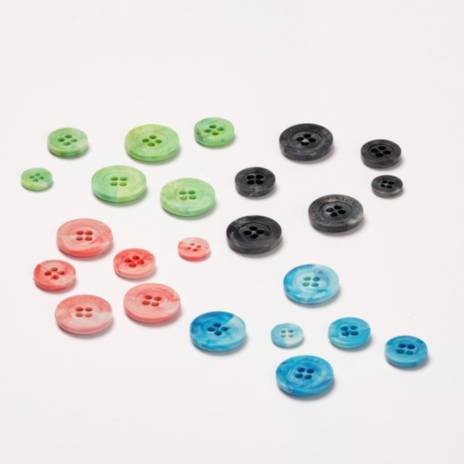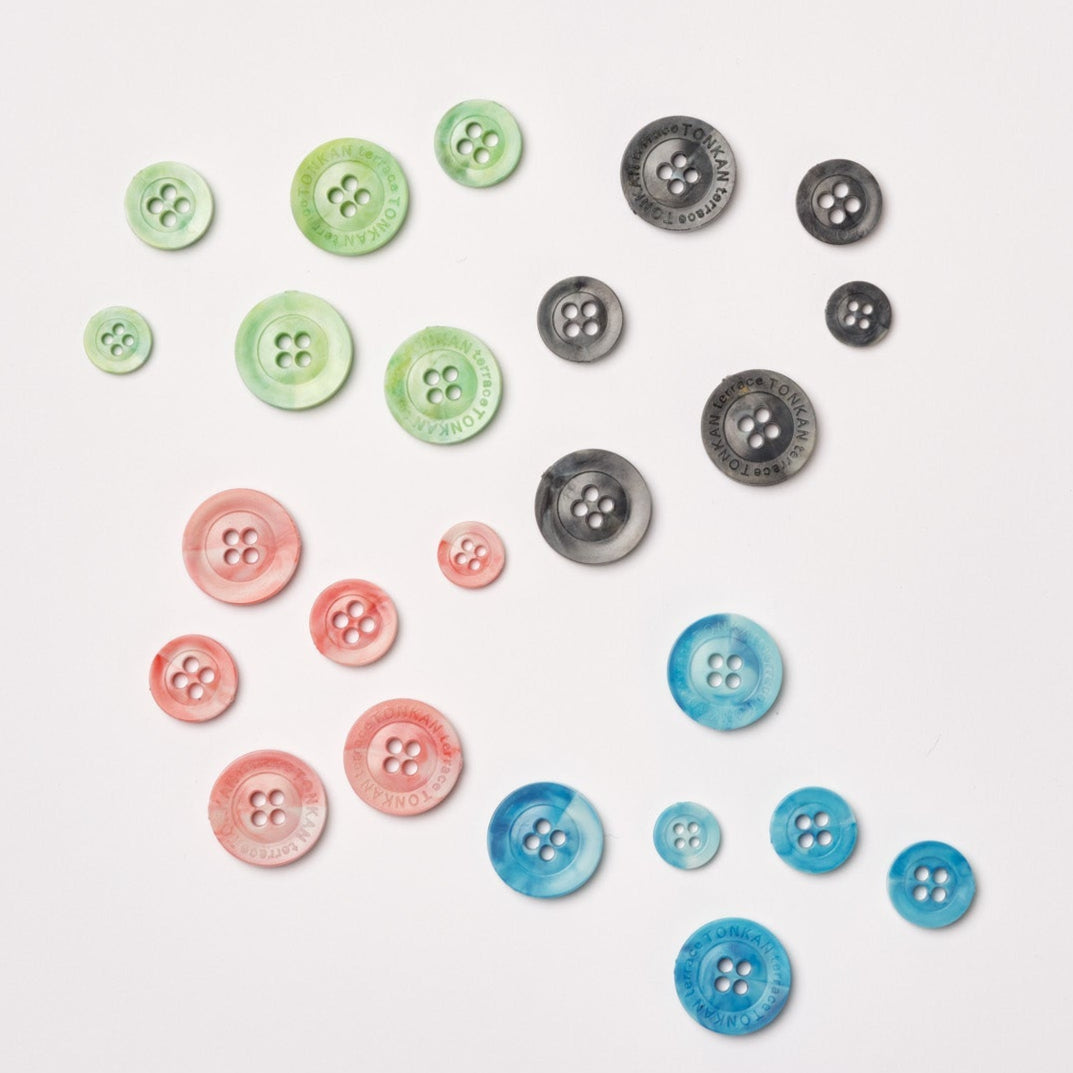 11.5mm・15mm・20mmの3サイズがセットになったサイクルボタンです。 衣類のワンポイントやクラフト素材として使えるほか、バラさずそのまま使えばおもちゃのコマとしても楽しめます。