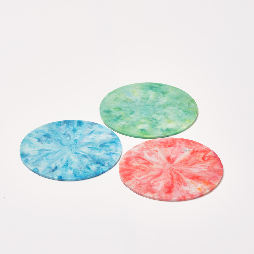 丸みのあるフォルムが愛らしく、壁やテーブルに貼るタイルとしてはもちろん、アート作品やクラフトのパーツとしても活躍するアップサイクルアイテムです。空間や作品に優しい雰囲気をプラスします。