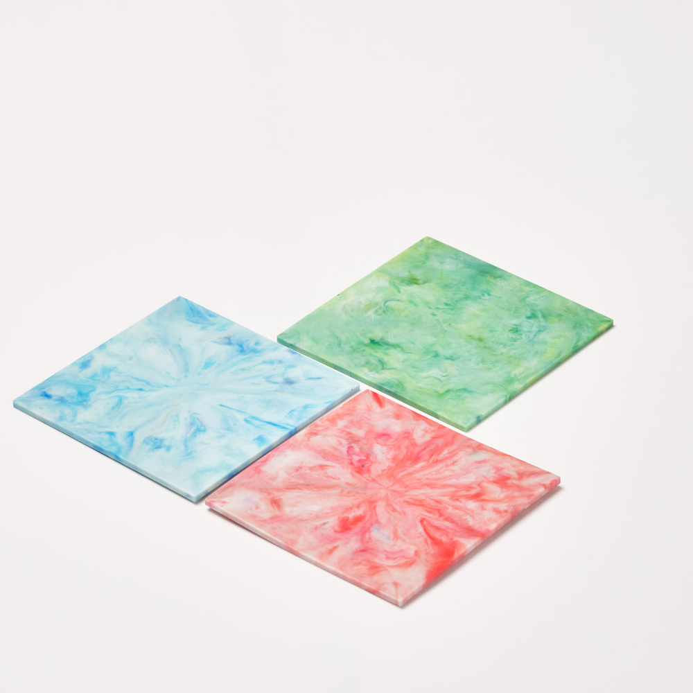 壁やテーブルに貼るタイルとしてDIYに使いやすく、絵を描いたり複数枚を並べてパネルにしたりと、アイデア次第でアート作品やインテリアにも活用できる多用途なアップサイクルタイルです。